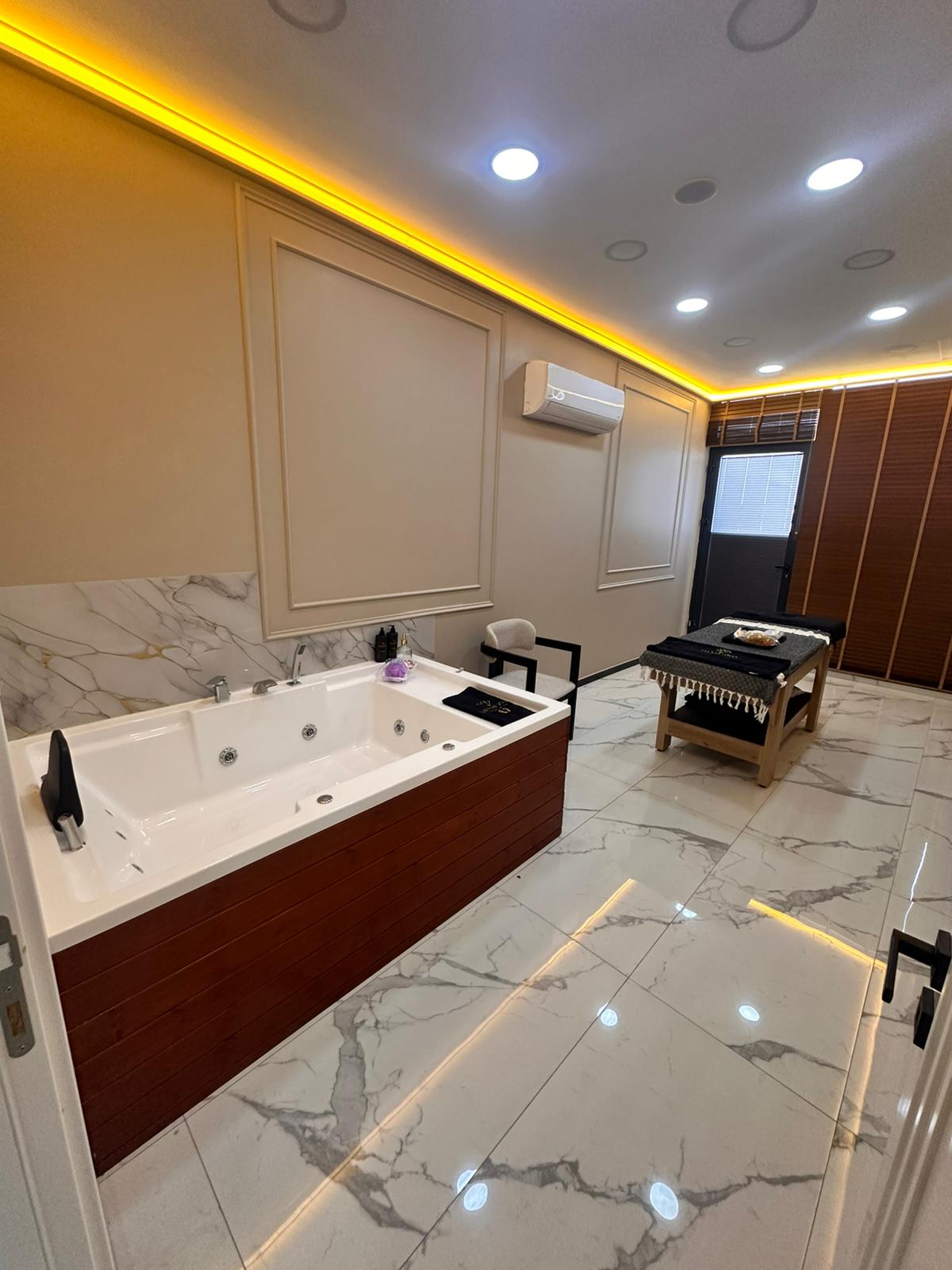 VIP Suit odamızın kalbinde sizi eşsiz bir rahatlama bekliyor. Özel olarak tasarlanmış, geniş çift kişilik jakuzimiz size sadece bir banyo değil, ruhunuzu dinlendirecek, duyularınıza hitap eden bir lüks deneyimi sunuyor.